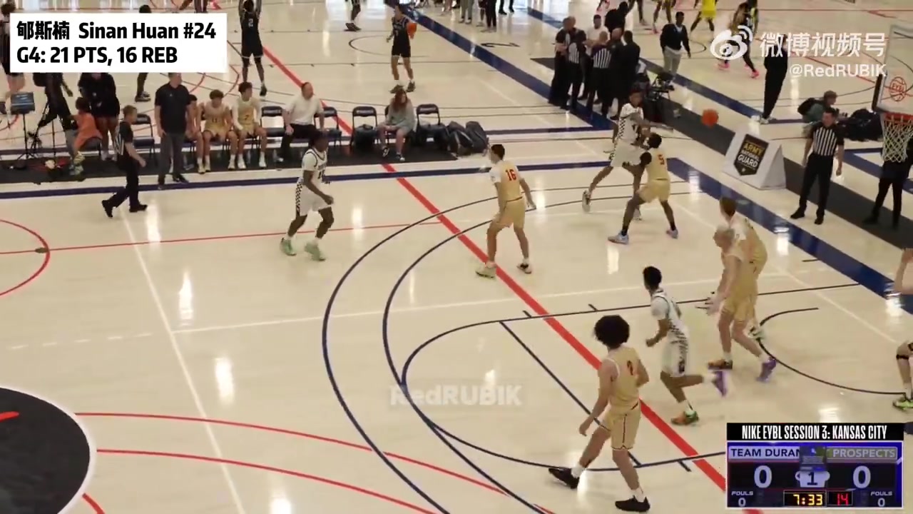 05月27日讯 本周EYBL(精英青少年篮球联赛)第三阶段,Team Durant 70-66 Utah Prospects,郇斯楠代表Team Durant出战27分钟,投篮8中7,罚球9中7,得到21分16篮板。