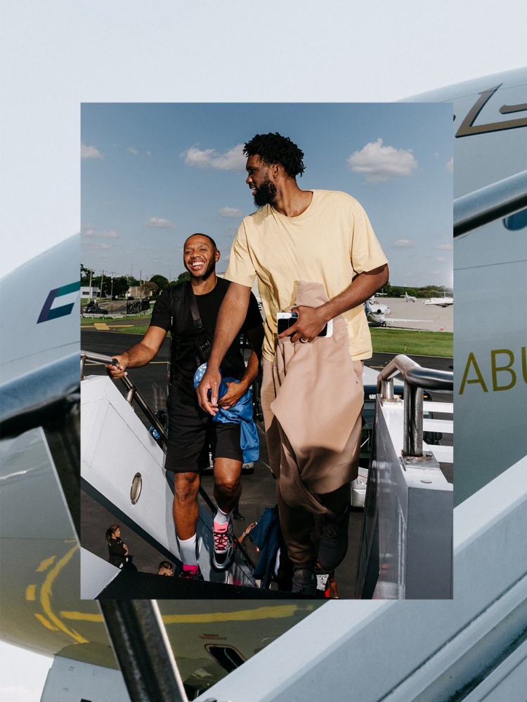 9月29日讯 76人官方社媒晒出了球员们的登机造型,全队启程前往阿布扎比。