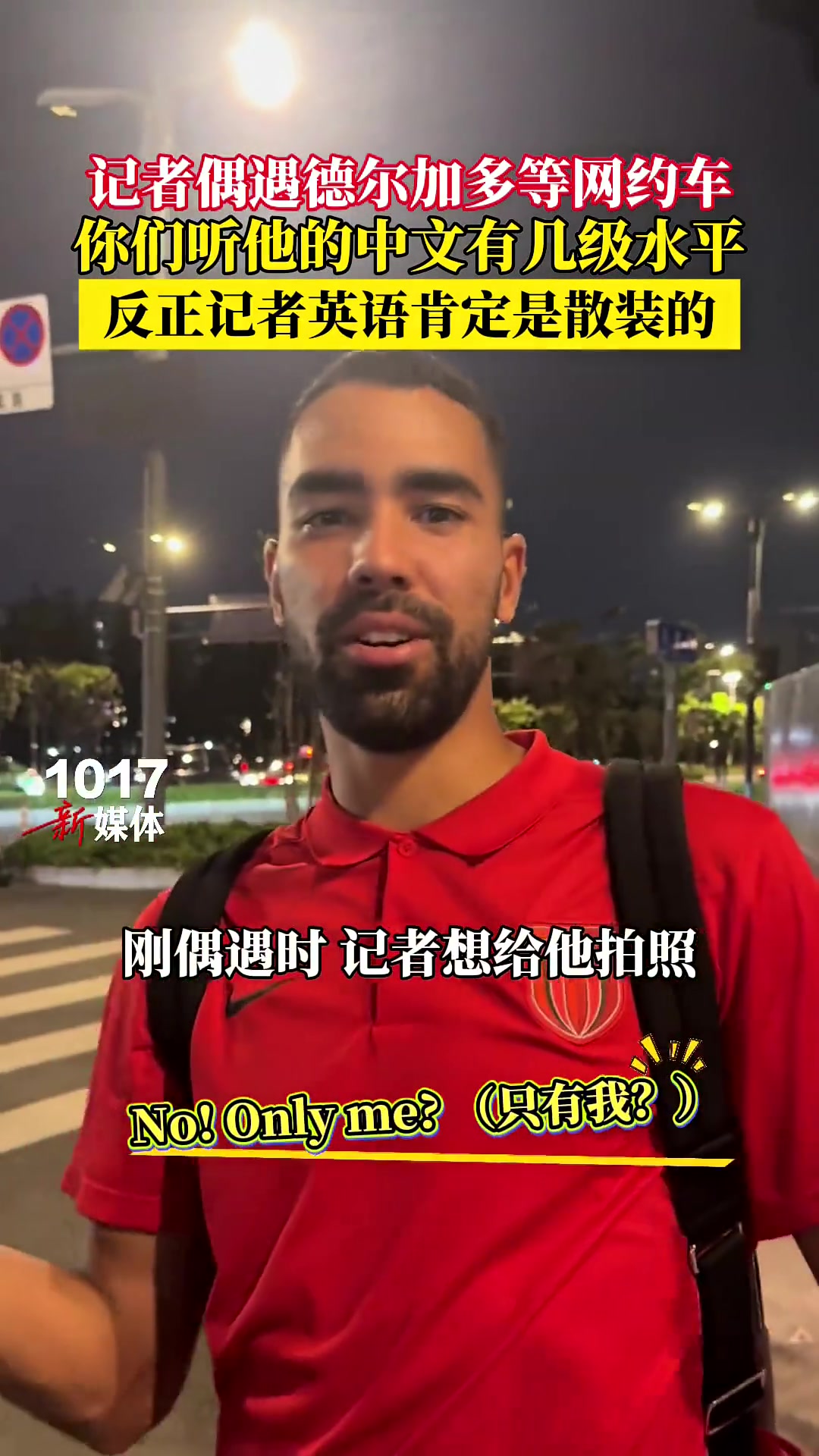 接地气!记者偶遇德尔加多赛后等网约车,后者流利中文喊亚冠加油